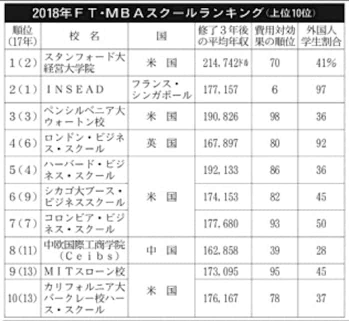 Ftのmba校ランキング スタンフォード首位 日本経済新聞