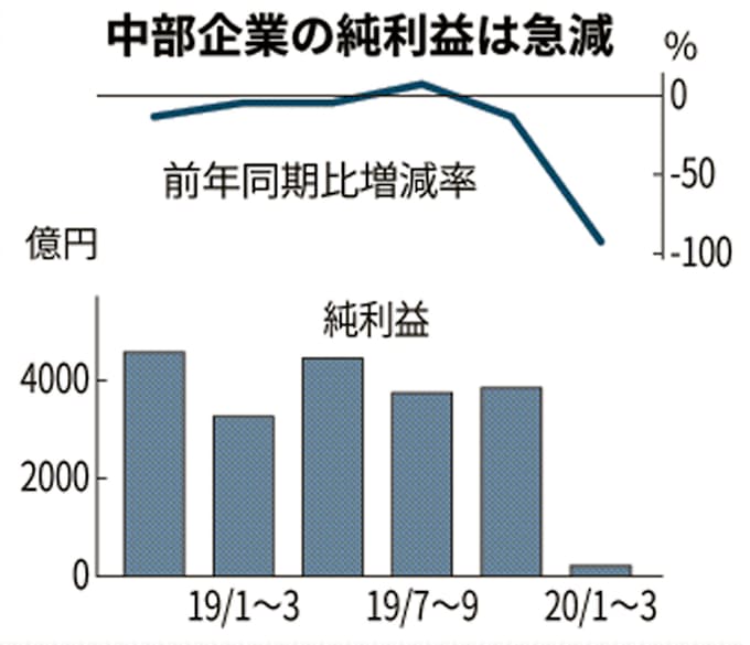 新型コロナ 中部企業の1 3月 最終9割減益 全国平均より悪化 日本経済新聞