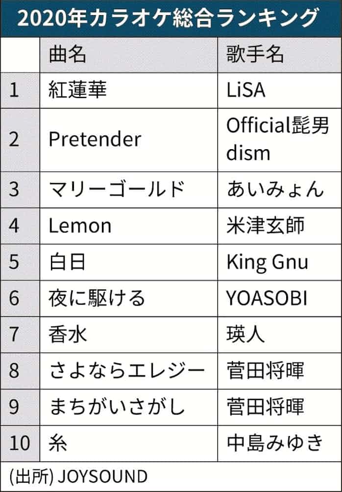 Joysound Karaoke Annual Ranking Announced Lisa Gurenge Ranked First Due To Movie Hit Gigazine