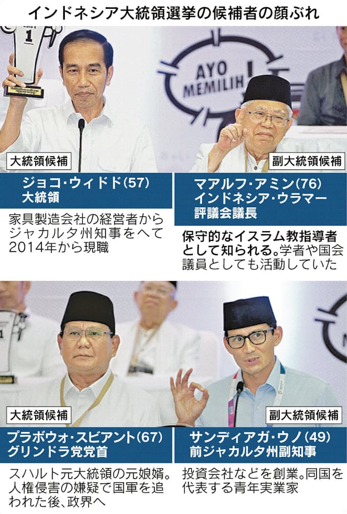 インドネシア大統領選 現職もイスラム色前面 日本経済新聞