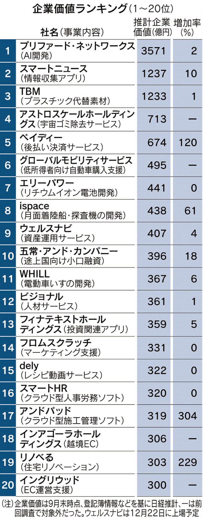 スタートアップの企業価値 宇宙関連や決済が上位に 日本経済新聞
