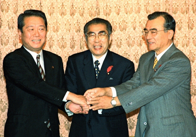 与党3党会談に臨む 左から 小沢一郎自由党党首 小渕恵三首 小沢一郎氏辞意表明特集 時事ドットコム